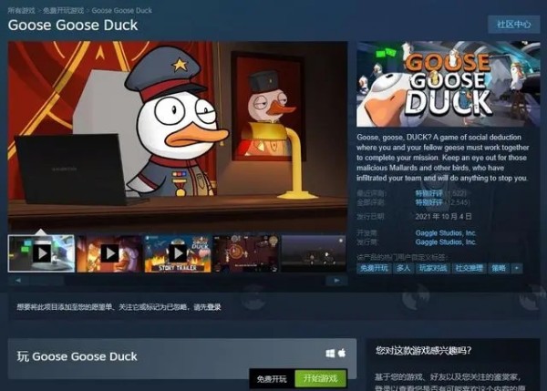 太空鹅鸭杀是一款steam游戏,玩家可以在steam平台下载体验,太空鹅鸭杀在太空鹅鸭杀平台的名称为goose goose duck,玩家需要在steam平台搜索英文下载。