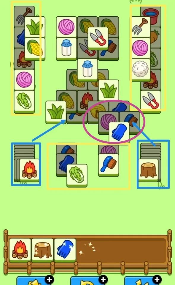 小主攻区的消除先主攻下区,结合辅助牌,带着中区和上区进行消除。