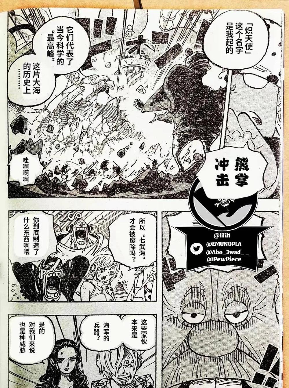 海贼王1071话情报在不断更新中,剧情越来越有趣了,草帽一伙即将逃离未来岛,CP0还在后面追杀他们。暴君熊的下落也明确了,他飞回圣地玛丽乔亚,抵达了红港,港口的人看到暴君熊有点害怕。暴君熊没有意识,他恢复不了,只能回到圣地玛丽乔亚继续当天龙人的奴隶,波妮追着贝加庞克打。
