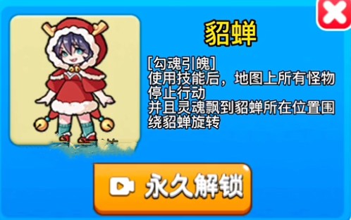 1、玩家使用貂蝉皮肤可获得使怪物停止行动的能力,且灵魂飘到貂蝉附近围绕貂蝉旋转。