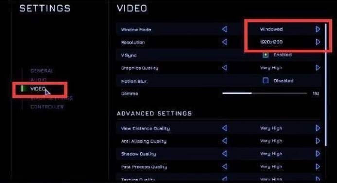 2、接着点击【VIDEO】,接着在调成【Windowed】和分辨率【1920×1200】就可以设置为窗口模式。