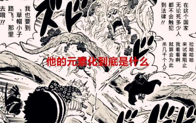 元素化就是变森林,无霸气,无克制攻击树木无效,对使用者没什么伤害的,他可以无限生长 ,弱点应该是火焰。自然系应该指的不是自然界的无机元素,而是某些自然现象,和这些自然现象代表的某种元素,例如烧烧果实,燃烧现象,代表元素火焰。 当然,有人可能会说,黑胡子也是自然系啊,他也不能元素化。很显然其他什么石石果实不能制造业不能物质元素化,暗暗果实也是元素物质化成黑洞物质只是他这个物质特性是引力所以不能免疫伤害。
