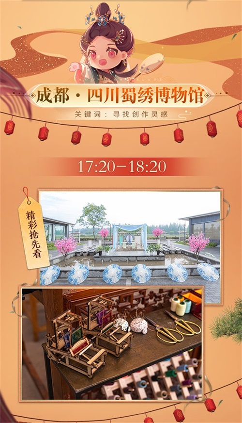 绫罗绸缎、可爱熊猫、精美蜀绣......这一切都来源于美丽的巴蜀之地成都~天衣阁阁主苏夜来正与蜀绣大师共同闭关创作蜀绣外观。然而,两位大师就创作灵感产生了分歧。少侠需要在成都搜寻蜀绣外观的灵感来源,协助两位大师共同完成蜀绣外观的创作!在这个过程中,说不定会有惊喜出现噢!