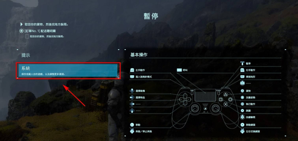 1、玩家可以在进入游戏,按options键进入暂停菜单选择弹出页面的系统选项。