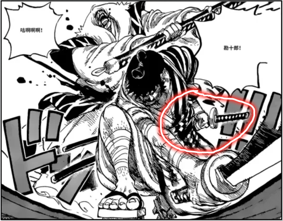 关键的问题在于锦卫门,锦卫门怎么说也算是“和之国”篇章的主角之一,那么他会不会死呢?有人说锦卫门的头都被凯多锤不见了,锦卫门必死无疑。然而编者想说的是,注意看狼牙棒,已经出现了裂缝。结合断刀的设定,锦卫门可能并没有死透。