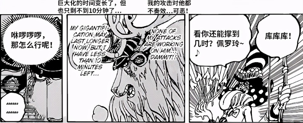 通过乔巴的回忆我们得知,原来曾经凯撒被抓的时候,竟然还取笑过乔巴,说乔巴只有3分钟太短了,要是他的话起码能够延长到30分钟,这给乔巴气的,鬼剑都出来。不过,毕竟是30分钟乔巴选择默默接受了~