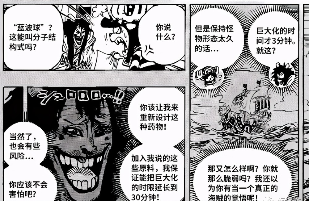 感受到自己的无力,这个时候乔巴想起了凯撒,原来乔巴自己的蓝波球也就有个3分钟的时间,之所有以变成如今的30分钟,全部都是凯撒的功劳。可即便如此,乔巴马上也会失去战斗力,而这段回忆的真正意义,是否是在说明,乔巴还会有一个终极药丸?