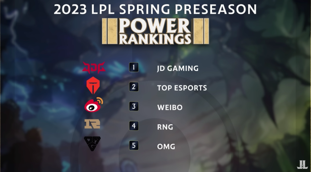 前五名唯一争议比较大的就是OMG,OMG新赛季的大名单其实并没有太大变化,而且在如今的德杯也是16进4的时候被AL直接淘汰出局,实在担不起前五这个排名。