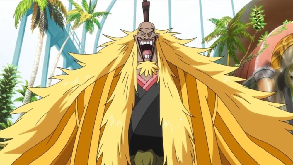金狮子史基,在旧时代中,和罗杰,白胡子起名的大海贼,像什么凯多,大妈都不够看,那个时代的金狮子拥有恐怖的兵力,他曾说过,只要罗杰和他合作,加上他的兵力以及计划推翻世界政府也是能做到的,并且金狮子是超人系飘飘果实能力者,能让自己和周围的物体漂浮在空中,佩刀樱十和枯木。