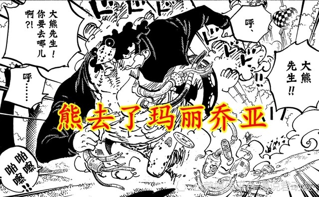 熊来到玛丽乔亚。萨博和军队长激战大将绿牛和藤虎,好不容易抢回了熊。熊回到革命军还没待热乎,一个传送就离开了,而熊前往的目的地竟然是玛丽乔亚。熊为何突然回到玛丽乔亚,难道天龙人有远程呼叫的手段吗?