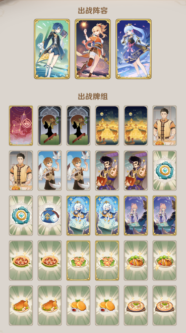 这套也是上线非常低,但是有些npc和角色邀请的认真胜负中敌方伤害过高没有花酥很可能让宵宫没开大就嘎了,还是推荐两套妈妈阵容都放到个人卡组内以备不时之需。