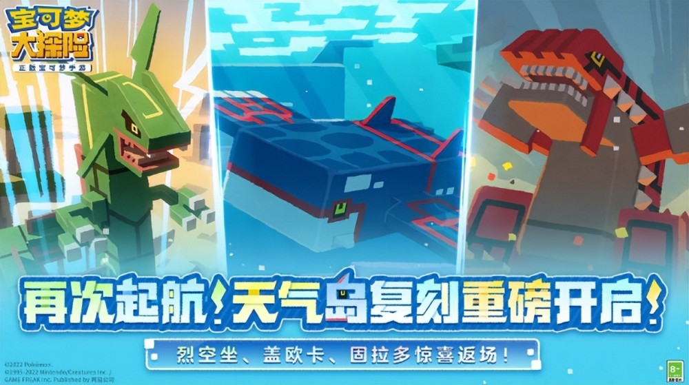 新年新玩法,在《宝可梦大探险》的元旦版本中,还会有大地之岛、海洋之岛、天空之岛三个版本活动中的宝可梦伙伴梦固拉多、盖欧卡、烈空坐、喷火驼、天蝎王、顿甲、美纳斯、吼吼鲸、利牙鱼、龙虾小兵、珍珠贝、天然雀、傲骨燕、长翅鸥、波克比、宝贝龙系数登场!三个天气岛的主题探险也重新开启,快来与新伙伴携手赶赴冒险之旅吧!新朋旧友一起快乐过新年!我们都在方可乐岛上等你哦!