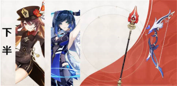 3下半的话应该是胡桃和夜兰了,也就是3.4版本复刻的话应该这两个没错了,武器当然就是这两个角色的专武了;