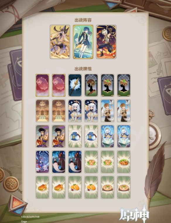 卡组思路:1.面对召唤流,剑鬼,起手找胡桃[送你一程],其次班尼特一命需要全力找。食品袋和小派蒙在多数卡组都留。