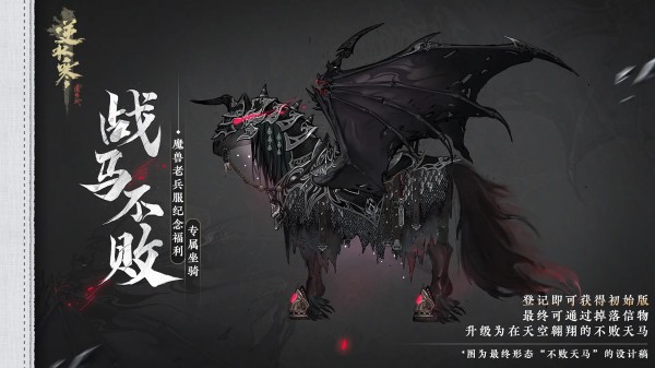 5、参与活动的玩家可以获得老兵服主题福利坐骑“战马·不败”与“传说永恒”系列纪念主题武器皮肤。