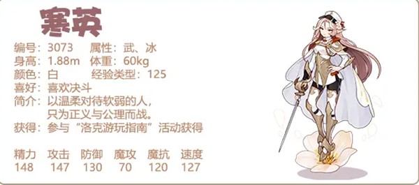 洛克王国中的寒英是物攻,寒英是主武系,副冰系的宠物非常值得玩家去培养,寒英具有永久免疫冰冻的特点,同时寒英会让武系的宠物受到威力伤害减少25%。