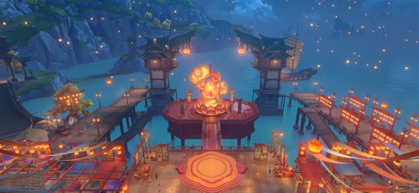 2、璃月的海灯节这这一天可以看到海上万千宵灯飞入夜幕。