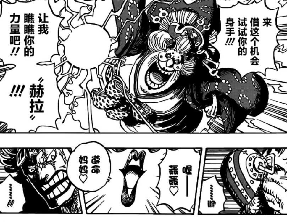 换句话说,就是大妈进行有效的近战攻击的话,她那“钢铁气球”般的身体就会变得脆弱,于是大妈可能会受伤。因此,大妈用霸王色霸气护体,然后用“魂魂果实”的能力进行攻击,就能够做到攻防一体。当然,这些都是小编我个人的猜测罢了。