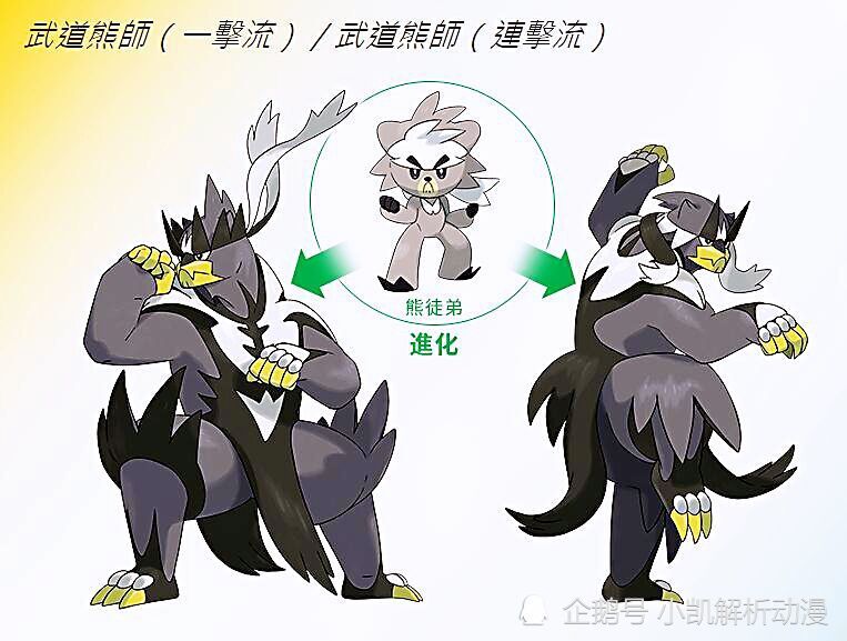 武道熊师一击流为(格斗、恶)属性/连击流为(格斗、水)属性传说的宝可梦。