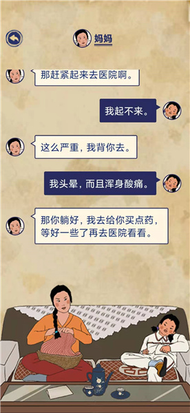 妈妈:那你躺好,我去给你买点药,等好一些再去医院看看