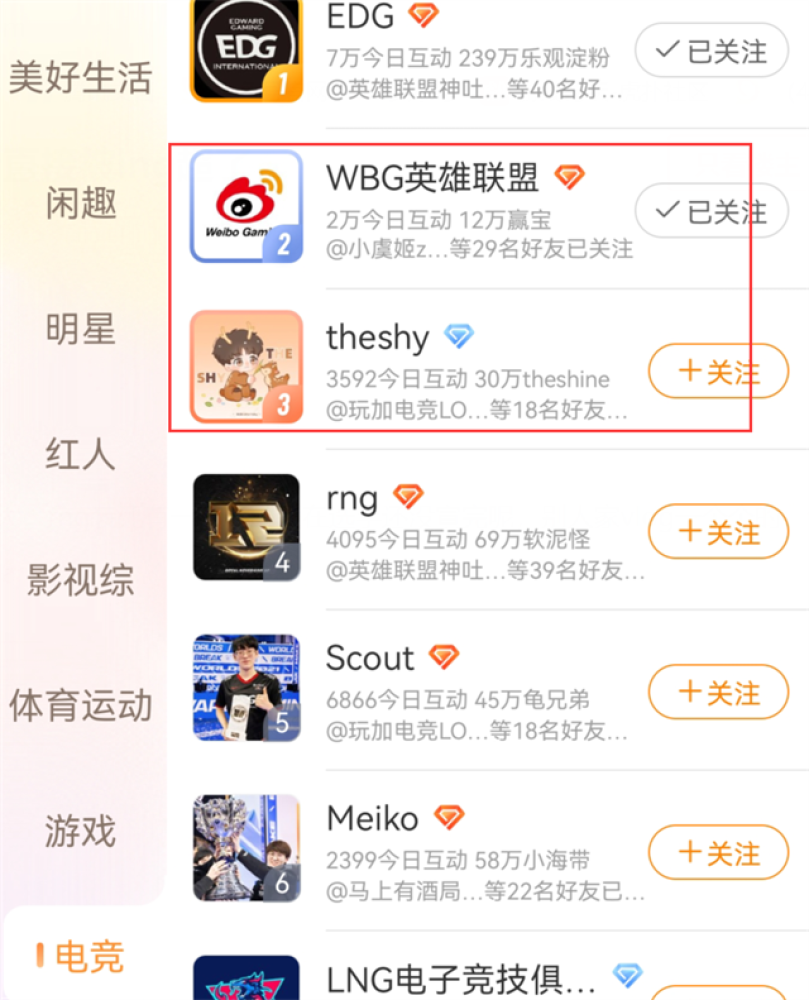 上个赛季WBG已经买了TheShy,但热度仍然不够,超话排名前三的是EDG、RNG和TES。第一名EDG是冠军队伍,有如此人气很正常。RNG虽然没世界冠军,却有季中赛冠军、春季赛冠军,占据第二位。TES则是因为队内双c粉的争执,超话热度居高不下。