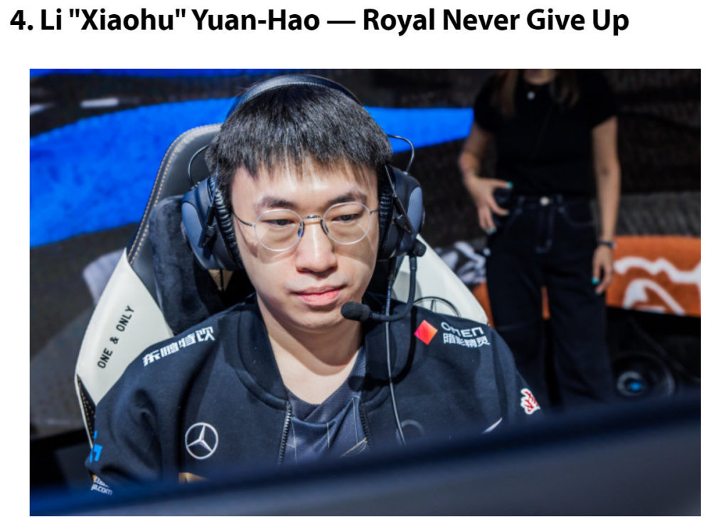 排名第三的则是Zeka,作为新晋世界冠军中单,在LPL征战了几个赛季后回到LCK,没想到第一年就有所收获!虽然在LCK赛区的时候,春夏赛季都是被其他人压着打,但在世界赛他完成了逆袭!排名第四的则是Xiaohu,这也是LPL唯一一个入选的选手,虽然最后队伍止步八强,但如果从全年表现来看,包含MSI季中赛,Xiaohu还是能够代表LPL进入这个名单里吧!而排名第五的则是Showmaker,不知道各位怎么看待这份名单呢?