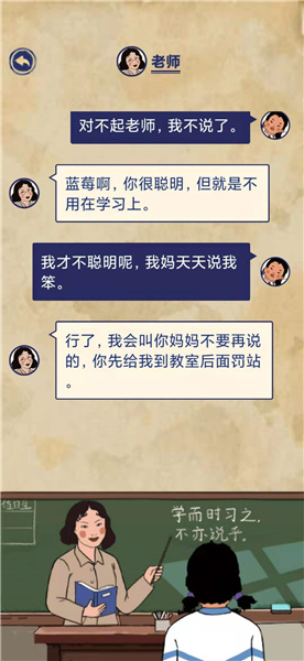 老师:行了,我会叫你妈妈不要再说的,你先给我到教室后面罚站。