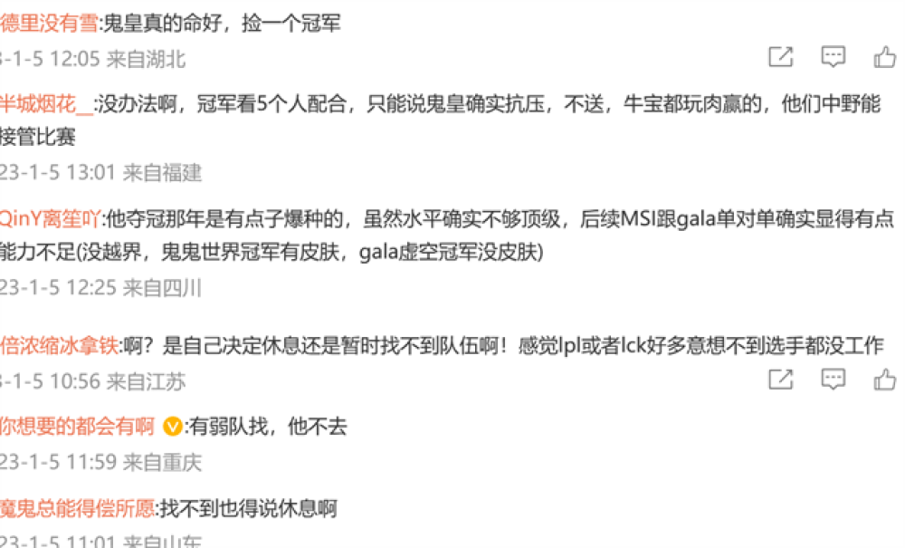 其次,Ghost解释了自己不打比赛的原因:有一支战队给我抛出橄榄枝,但我想加入能晋级世界赛的队伍。虽然很想继续打,最后还是决定休息一下。曾经的s10冠军ad,如今只有一支弱队愿意接触,Ghost实力并未获得认可。
