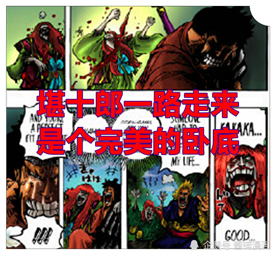 第六,光月一族有【传次郎】作为卧底,而与之交换的,是黑炭一族有【堪十郎】作为卧底,堪十郎完美地完成了卧底任务,是凯多阵营少有的优秀卧底。