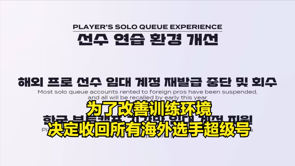 而LCK官方之所以会这么做,原因就是眼看LCK春季赛即将开赛,根据联赛十支队伍提出的意见,将在新赛季对联赛的运营、比赛场地、设备以及训练环境进行改进优化。其中关于训练环境这块,LCK将暂停所有海外选手韩服超级号的发放,并于23年第一季度内回收完毕所有海外选手超级号。