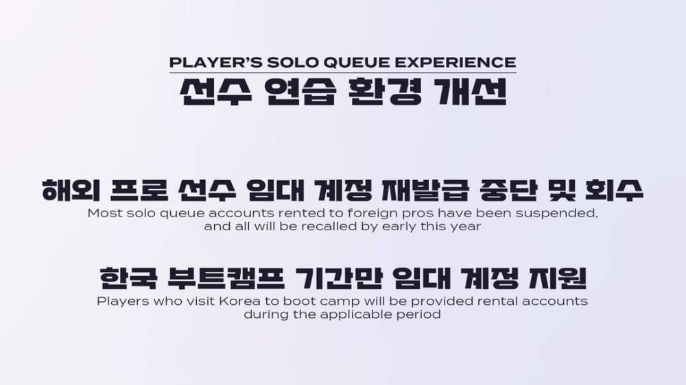 LCK官方公告里透露,“由于某些海外赛区的租赁帐户使用方式不符合预期,因此决定暂停发放。截至12月1日,大部分租赁账号已被召回,其余租赁账号预计最迟将在今年第一季度内全部召回。”