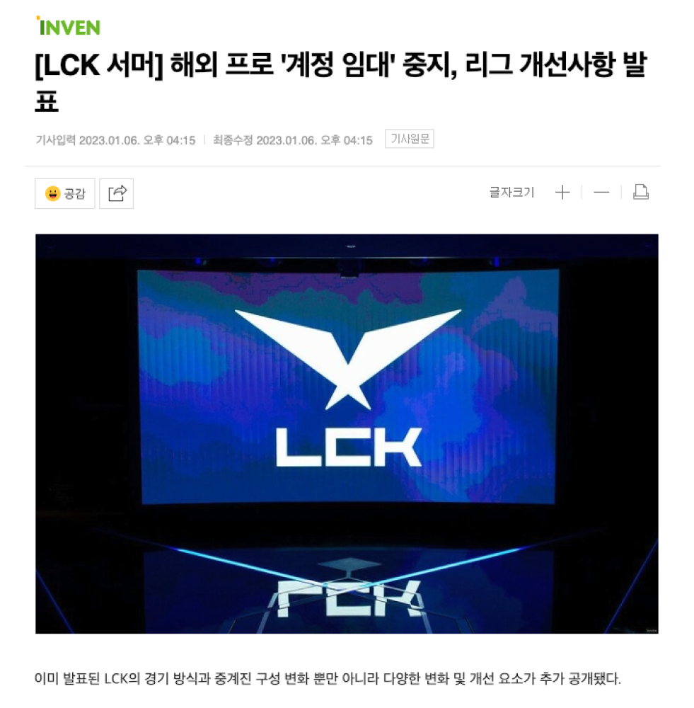 于是从2022年年底开始,LCK官方已经逐步开始收回此前租赁出去的超级号,1月6日,根据韩媒Naver最新消息披露,LCK韩服官方将从2023年开始,根据选手以及战队的一些改进建议,对韩服的环境进行大幅度改善,其中一个重要举措就是停止发放外赛区的超级号,并计划在2023一季度完成所有外赛区超级号的回收服务。