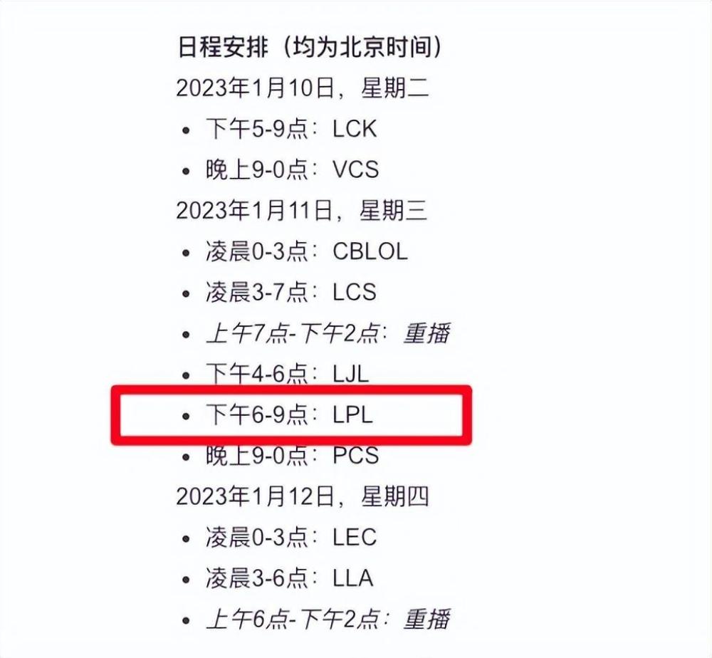 首先从赛制方面来说,虽然官方的要求里写明了【9个赛区的所有职业队伍都将派出选手】,但从赛程安排来看,每个赛区的比赛时间只有4-5个小时左右,LPL赛区是从11号的下午6-9点,所以3个小时不可能面面俱到派出太多选手参与。