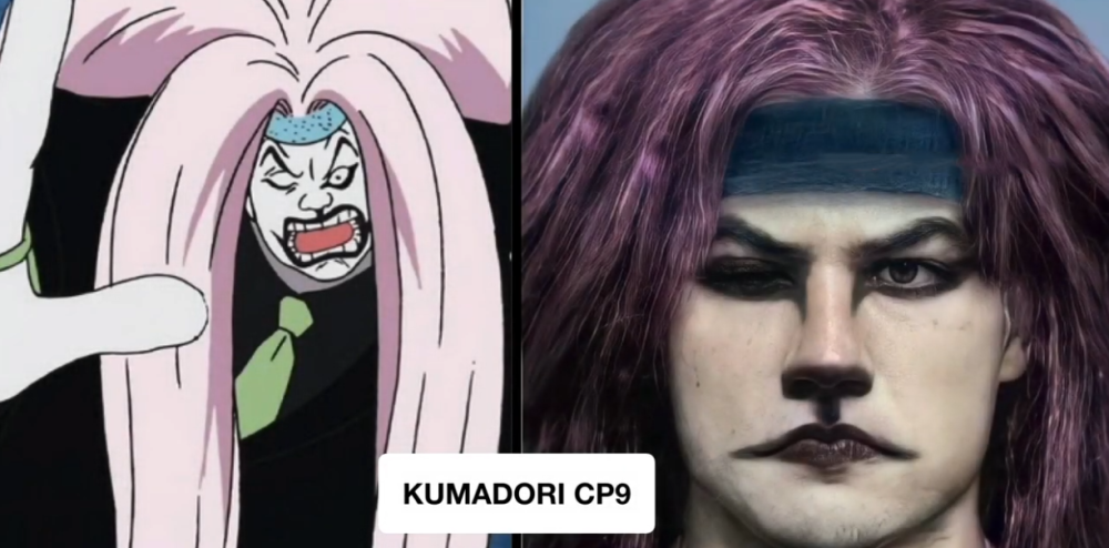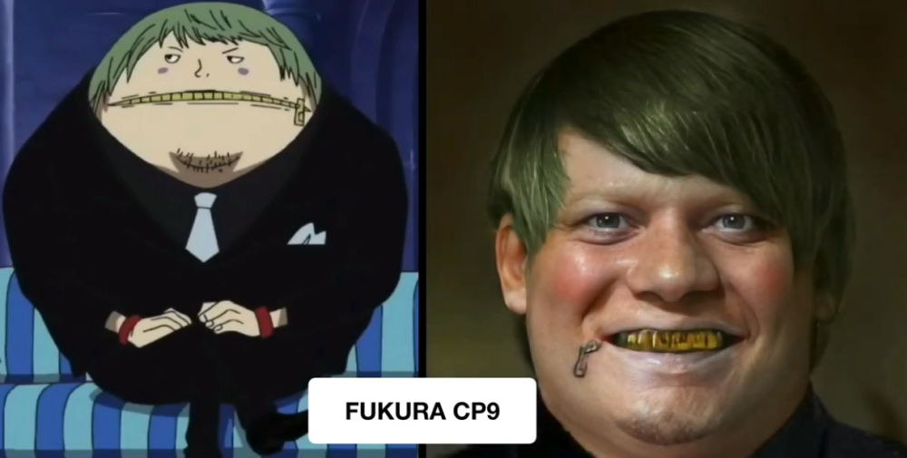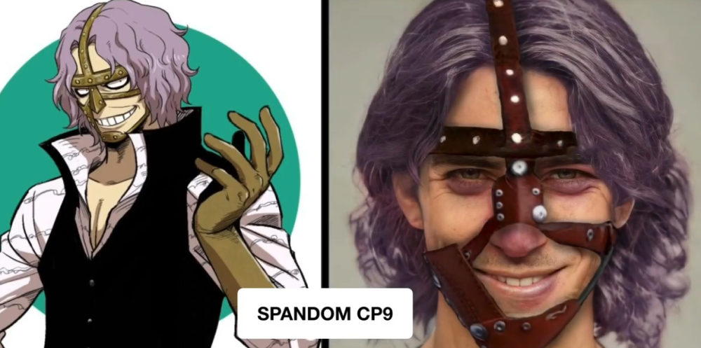 猫头鹰可以说是CP9成员中长相最奇怪的一位,因为他的嘴居然是个拉链,体型也是异于常人,看起来就像是一个气球。AI技术下的猫头鹰是满口金牙,嘴边的拉链看似有些多余,不过发色还原的不错,整体感觉贴合原作中的形象,如果未来海贼王真人版能做出这样的效果,就已经相当不错了。