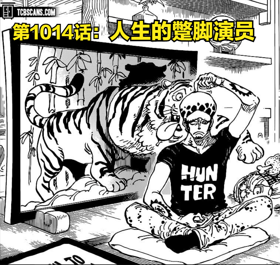 海贼王和之国篇第1014话终于更新,漫画的封面是“罗在一幅老虎画卷面前挠头”似乎在讽刺着勘十郎当卧底的戏码。
