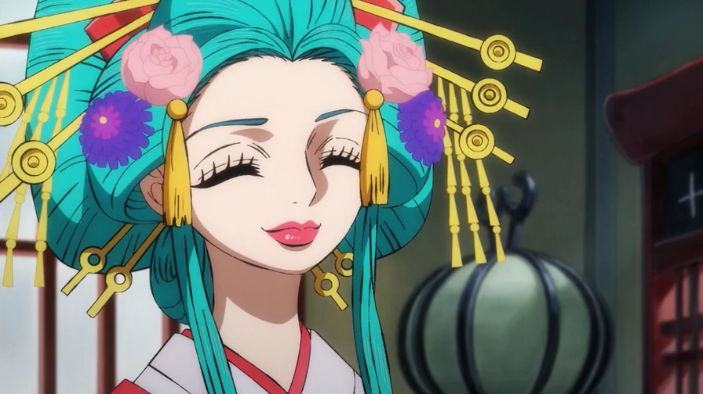 狂死郎也告知了日和自己的身份就是传次郎,而光月日和之后就一直留在狂死郎的身边,并且改名为“小紫”,也就是现在的和之国花魁。