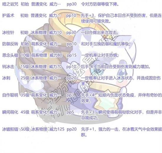雪罐呼呼技能表: