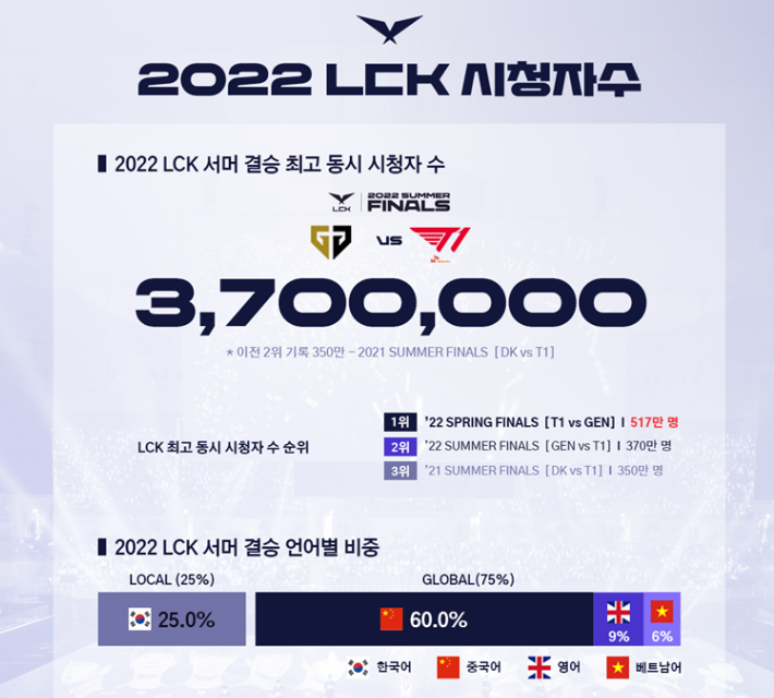 去年LCK收视率中国观众占比60%