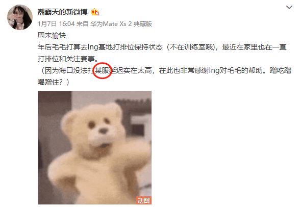 JKL玩的还是韩服,可能是因为韩服还没把超级号回收完,有超级号的选手还能最后爽一阵。Lvmao的老婆透露Lvmao会去LNG基地打排位保持状态,因为如果在海口,打某服延迟太高,去LNG基地会好一些。这个“某服”很可能是指韩服,毕竟如果Lvmao玩国服的话,那肯定不会存在延迟太高的问题。