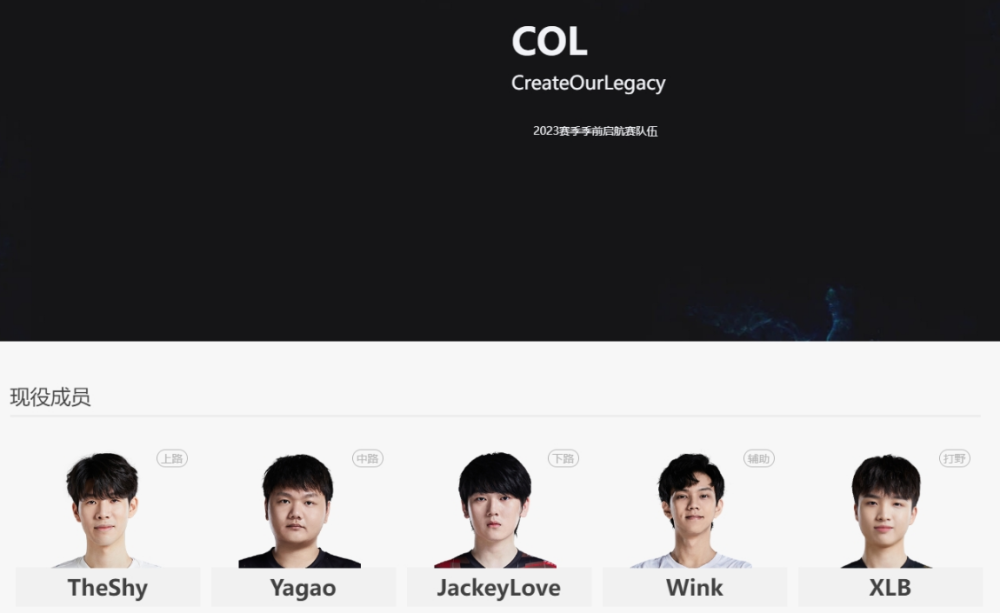 从COL这支队伍的成员构成来看,TheShy与JackeyLove的仁川人组合无疑是这支队伍最大的亮点之一。与此同时,同样作为前iG的选手,Wink与JackeyLove的双人路组合也是颇为有趣。当然了,Yagao与XLB这对“一老一少”的中野组合也将在此次季前启航赛中首次联手。不知道他们会为我们带来怎样的精彩表现呢?