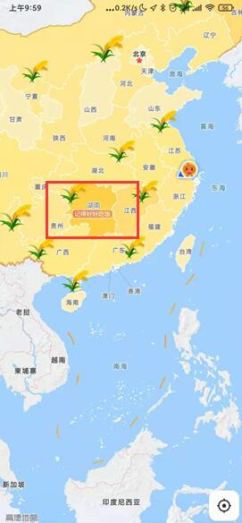 5.部分地方还会有水稻标识展现,同时湖南省省份上面还会附有“记得好好吃饭”,这一句话,温暖了多少人。