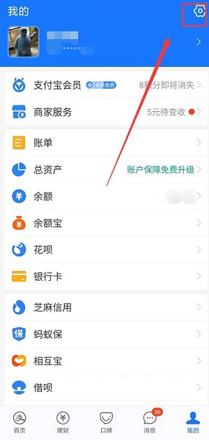 1.首先进入应用支付宝,在“我的”界面右上角找到进入设置中;