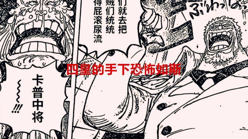根据海贼王的套路,一般人想要打四皇的话,第一步就得要先把四皇的手下全部打败,他才有资格跟四皇对抗,就比如大妈和凯多,这两人身边的干部非常多,有三星将、三灾以及六子,同样黑胡子也是如此,他的九个队长,可不是开玩笑的,每一个人都是深藏不露的高手,特别是从推进城出来的人,一个比一个狠,而卡普想跟黑胡子大,首先就得要大败恶政王、希留、九尾狐等。