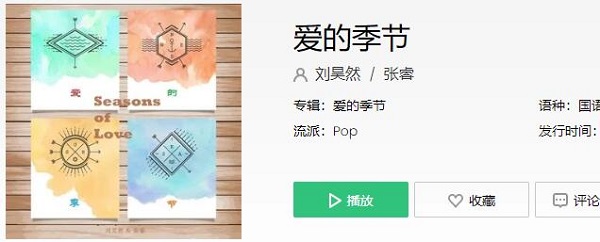 这首歌是由刘昊然/张睿演唱的《爱的季节》,所属专辑《爱的季节》,发行时间:2015-10-30。
