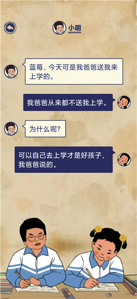 同学:蓝莓,今天可是我爸爸送我来上学的。