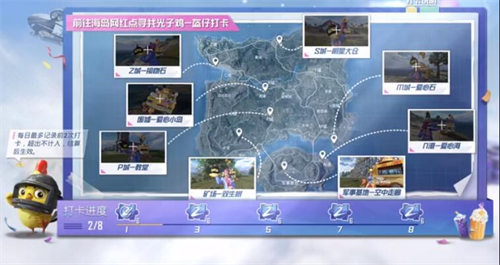 前往经典海岛找到光子鸡-盔仔,朝着光子鸡-盔仔点击拍照按钮即可完成,返回活动界面查看解锁照片每天可打卡2处!