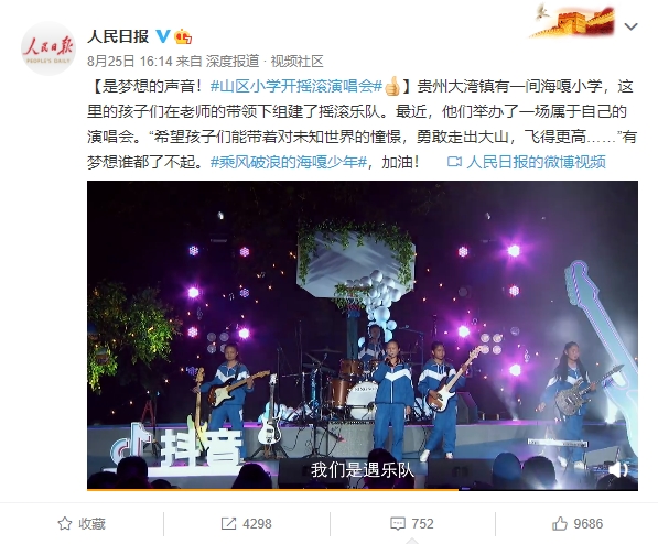 近日,贵州一群山里的孩子实现了自己的梦想。在抖音的帮助下,他们举办了一场属于自己的演唱会,还获得了人民日报的点赞。