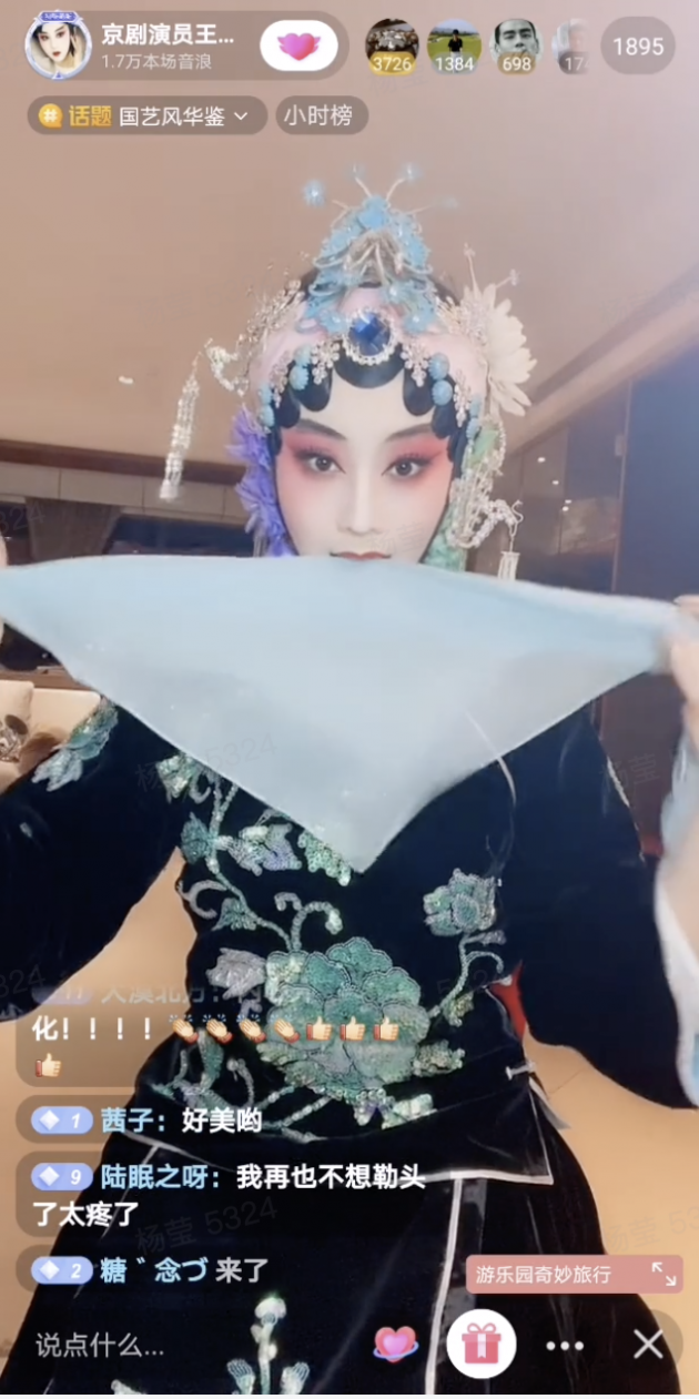 [email protected](抖音号:14016308)就是抖音上最受欢迎的青年戏曲演员之一。凭借15秒"变装"视频,从"便装"到"戏装"的瞬间转变,曾受到不少网友喜爱。在这次直播中,王梦婷扮起戏装,讲解大热电视剧《鬓边不是海棠红》中《战宛城》邹氏一角咬手绢的表演,一挑眉,一转眼,把角色的忧愁烦闷表现得淋漓尽致,惹得网友们纷纷惊呼点赞。