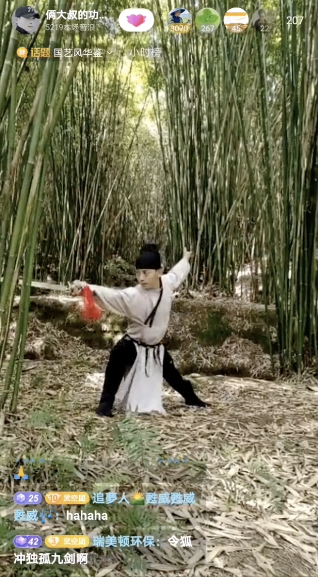 值得一提的是,武术也是中国国艺中重要的一部分,[email protected](抖音号:0000000FM)凭借一身武功"绝学",从众多优质内容创作者中脱颖而出。抖音直播间里,刀枪棍棒,样样虎虎生风,一招一式让网友们移不开眼球,过足了心中的武侠瘾。