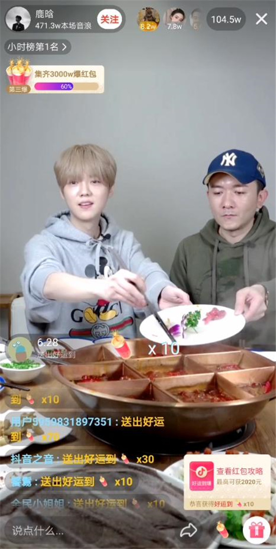 在近期的一场“抖音直播群星宠粉夜”直播活动中,抖音邀请到了人气偶像——鹿晗做客直播间与大家进行互动。当晚,鹿晗直接把直播间搬到了火锅店,边吃火锅边和大家聊天。